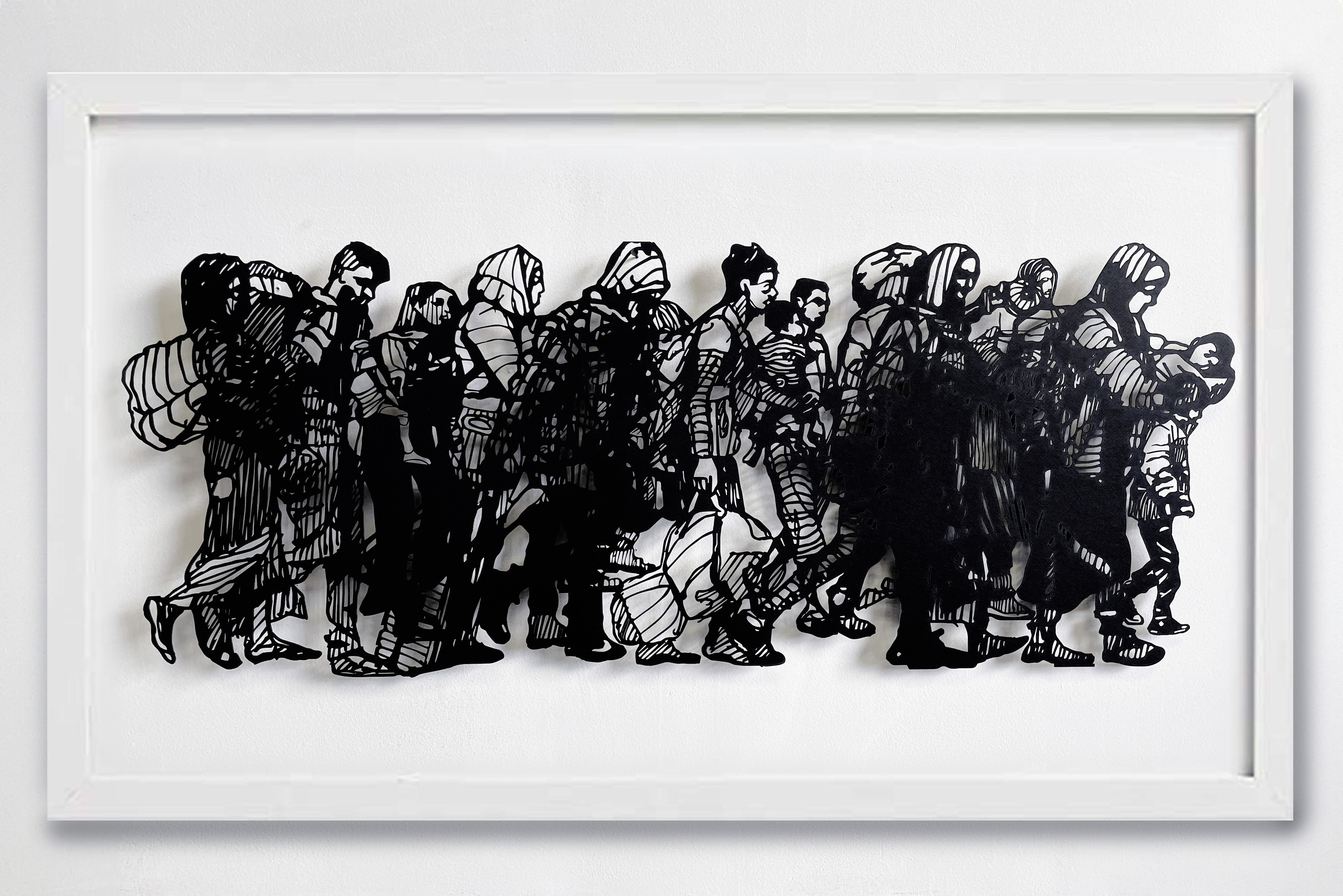 Nelson Gutierrez, Traveler 10, 2024, Acrylic, enamel and wood, 15 x 8 inNelson Gutierrez, Walking, 2024, Mat board, plexiglass and wood, 28.5" x 52.75"